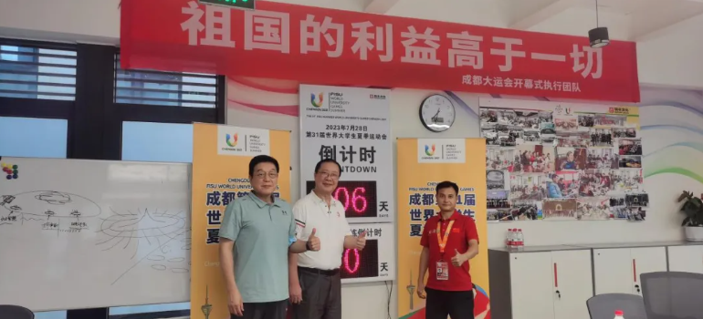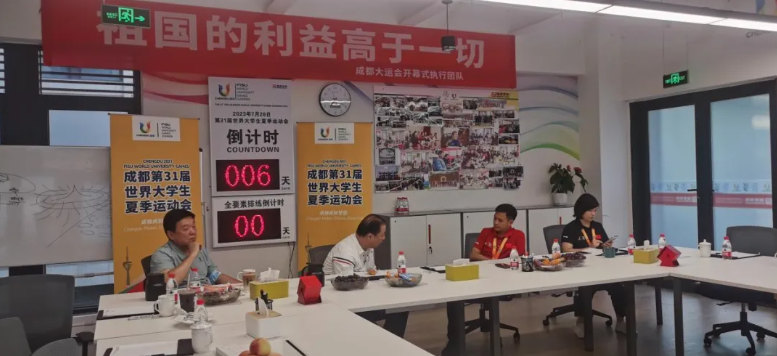 前往成都大运会开幕式彩排现场观演,并在大运会开幕式执行团队办公区与王锐祥会谈交流。