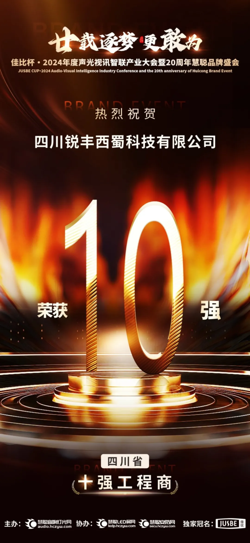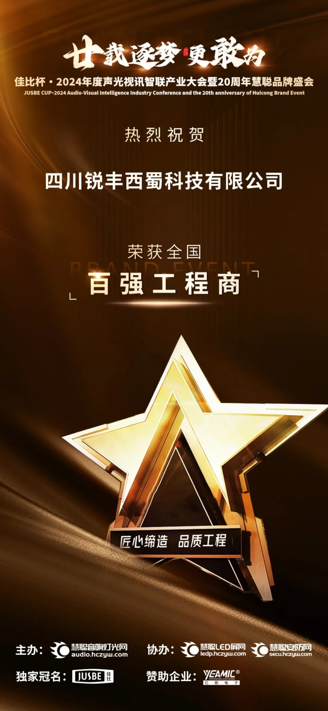 祝贺!锐丰西蜀科技连续七年荣获声光视讯【全国百强工程商】【四川省十强工程商】