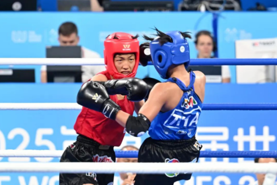 女子60公斤级决赛中国选手韩鑫再获一金,彰显中国泰拳崛起之势。