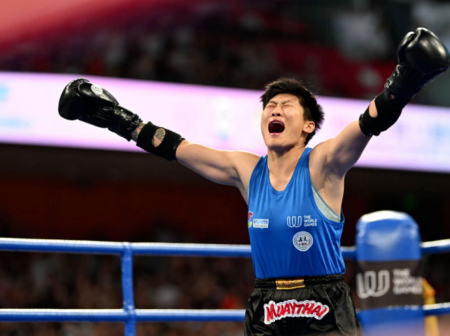 8月10日晚,成都世运会泰拳项目终极对决在四川省体育馆展开。