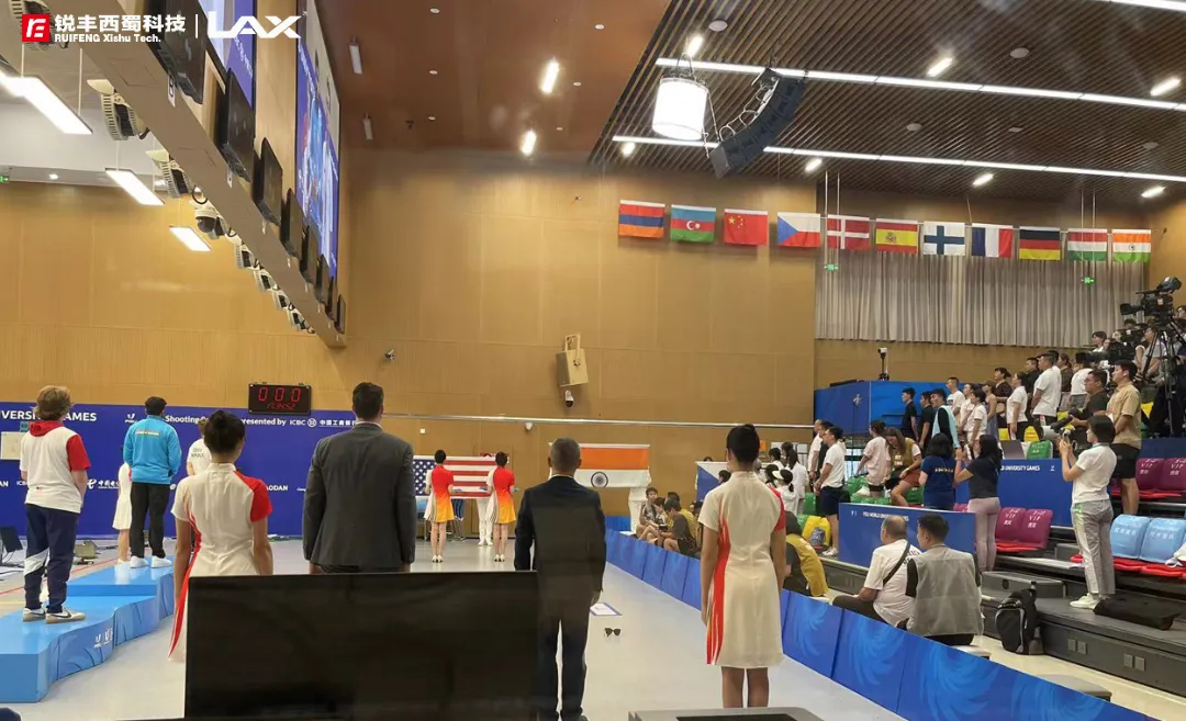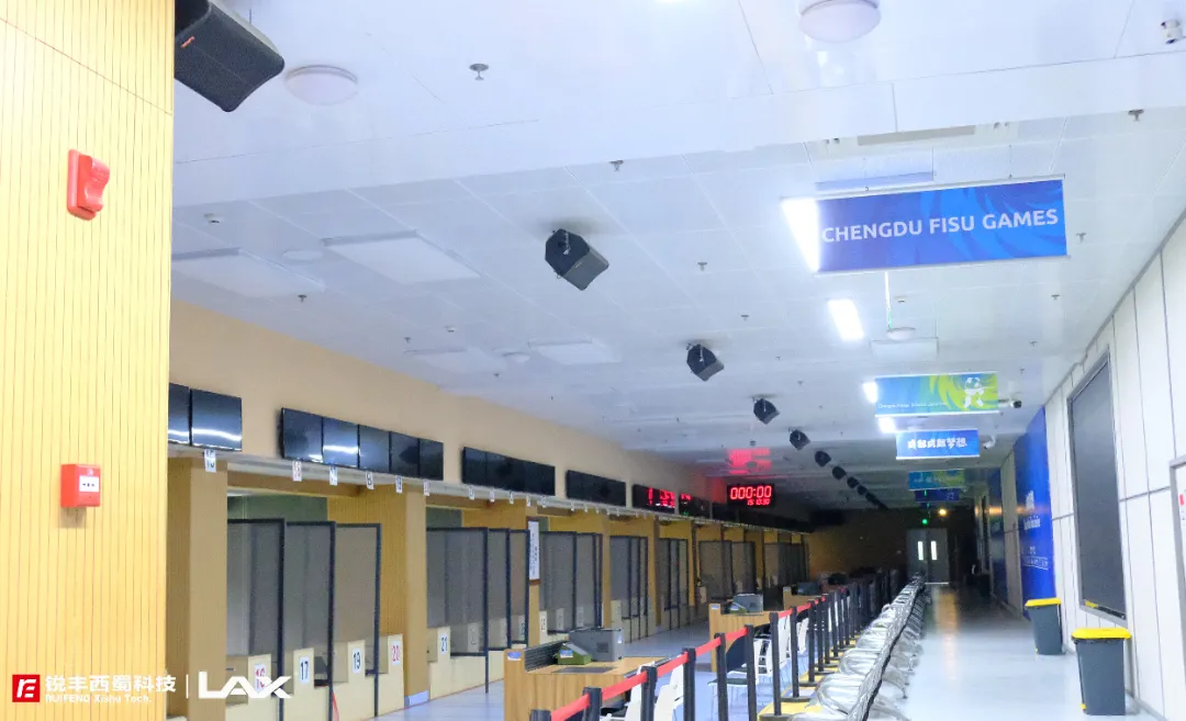 场馆中10米射击馆、25米射击馆、50米射击馆以及决赛的扩声系统均由锐丰西蜀科技|LAX团队提供技术支持,确保现场的音效符合赛事需求的,让观众能沉浸式感受到“神枪手”们的精彩对决。