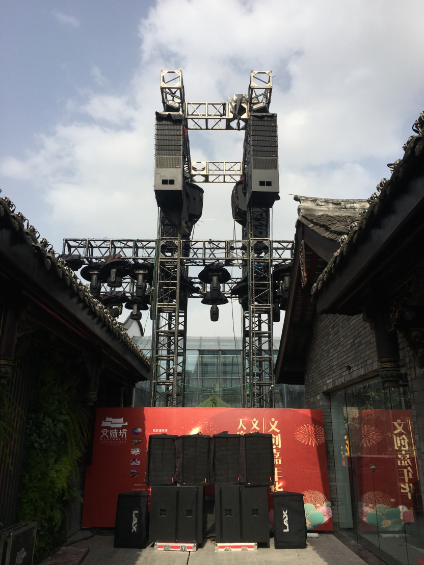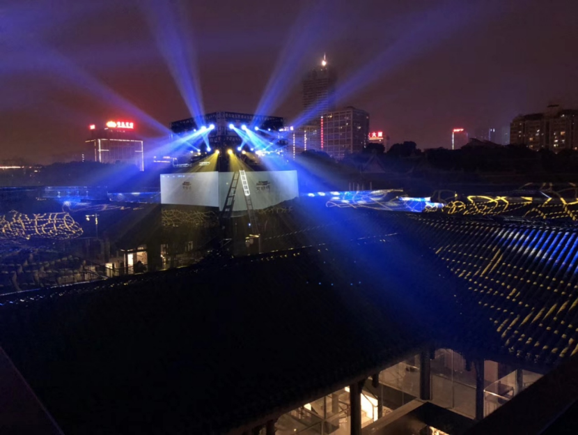 整个光影秀,锐丰科技专业团队利用投影、激光、光束、光带、光仟、升降灯光球等光影科技产品结合LAX AT3212-V2线性阵列、AT15M返送扬声器打造了一场别开胜面的多声道体验。