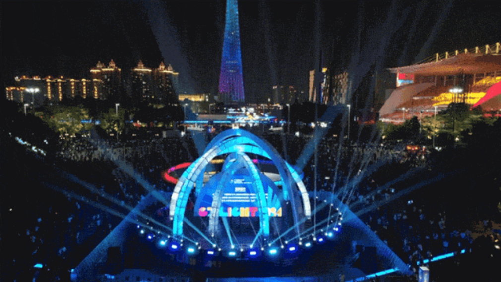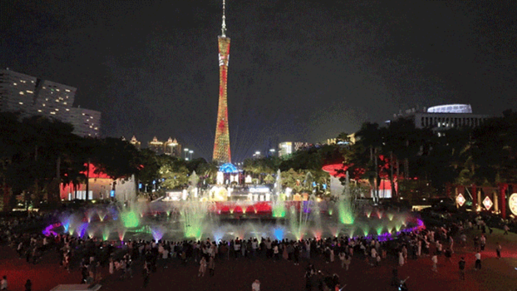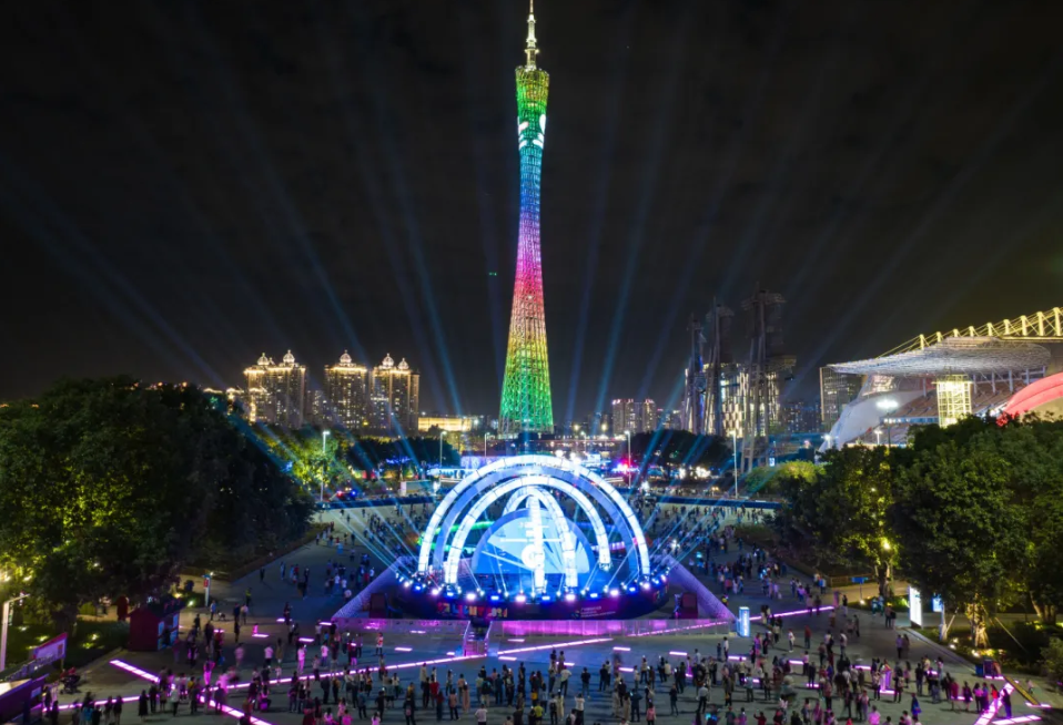 呈现360度环状灯光秀,展现粤港澳大湾区核心城市的发展活力。